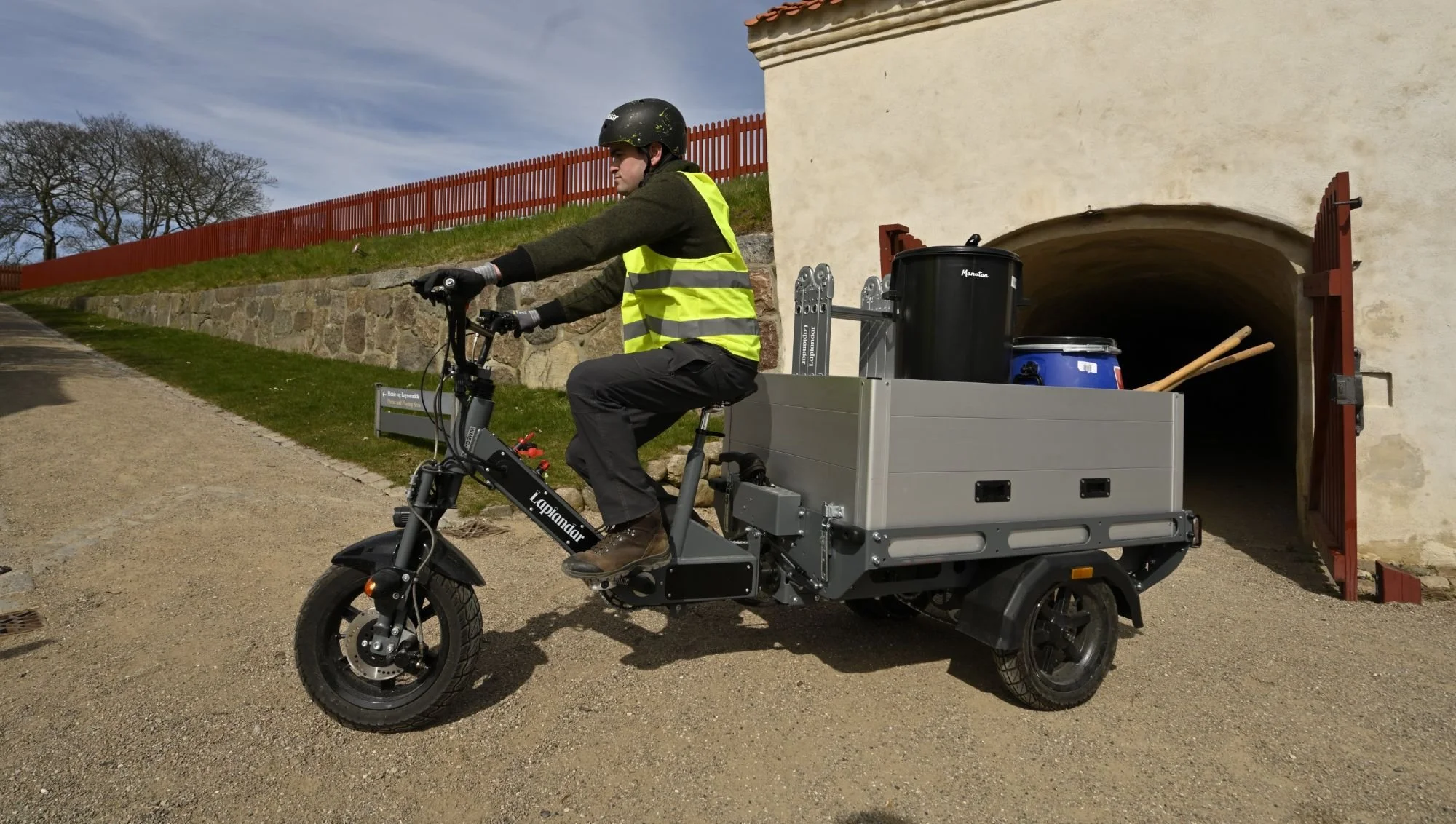 För att minska den motoriserade trafiken inom det historiska området använder driftteamet på Kronborg Laplandars elektriska lastcyklar för två huvuduppgifter: att samla in avfall och transportera leveranser runt på området.